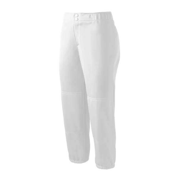 - Low rise pant fit exclusive for women with unbelted elastic waistband.
